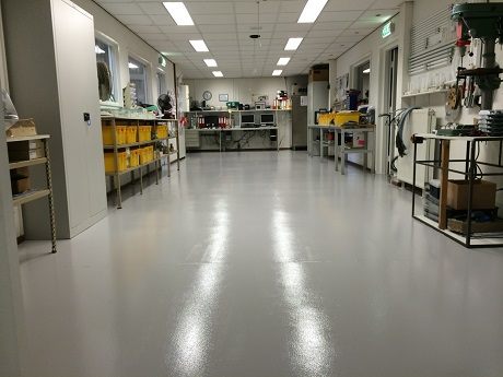 Revêtement résistant aux UV à séchage rapide pour basses températures et forts passages, à base de résine polyaspartique à très haut extrait sec.