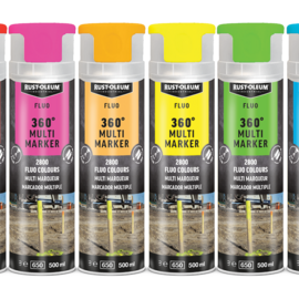 Voor snel en gemakkelijk markeren van constructies, opgravingen, ondergrondse voorzieningen en voor verkeersveiligheid. Geoptimaliseerd voor grondmarkering. Dankzij de innovatieve 360° ventiel zijn ze in elke richting spuitbaar. RUST-OLEUM® Spot Markeerverf (500 ml) is gebaseerd op een sneldrogende acrylaathars. Alle producten in deze serie zijn aromaatvrij en zijn gebaseerd op lood- en chromaatvrije pigmenten.