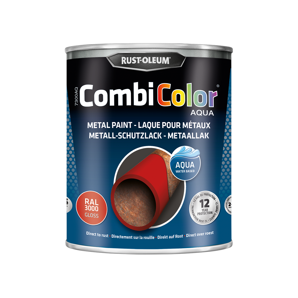 RUST-OLEUM CombiColor Aqua-Beschichtung ist Grundierung und Decklack in einem, basiert auf einem wasserbasierten Acrylharz mit haftvermittelnden Eigenschaften und trocknet schnell. Das Produkt enthält rostschützende Pigmente und ist blei-, chromat- und zinkfrei.
