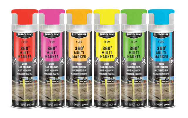 Für schnell und einfach Markieren von Konstruktions- und Ausschachtungsarbeiten, Baustellen, Tiefbau und für Verkehrssicherheit. Optimiert fur Bodenmarkierunngen. Die Spraydose ist Dank dem innovativem 360°C Ventil in jede Richtung zu verwenden. RUST-OLEUM® Markierungsspray ist basiert auf einem schnell trocknenden Acrylharz. Alle Produkte in dieser Serie sind Aromatenfrei und haben blei- und chromatfreie Pigmente.