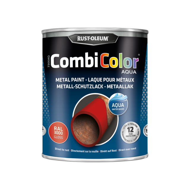 RUST-OLEUM® CombiColor Aqua is een grondlaag en deklaag in één, op basis van een acrylhars op waterbasis met hechtingsbevorderende eigenschappen en is snel drogend. Het product bevat roestwerende pigmenten en is lood-, chromaat- en zinkvrij.
